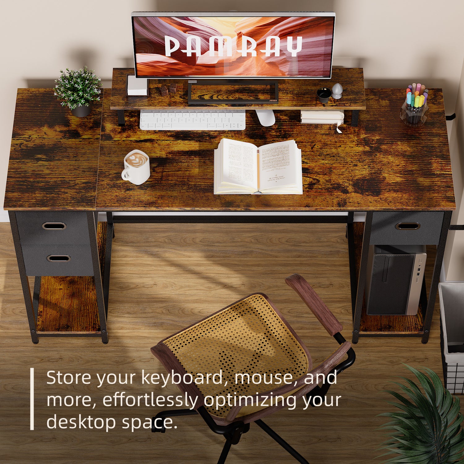 PAMRAY 55 Inch Computer Desk with Storage Drawers and Monitor Stand Home Office Desk for Bedroom Study Table Writing and Work Desk