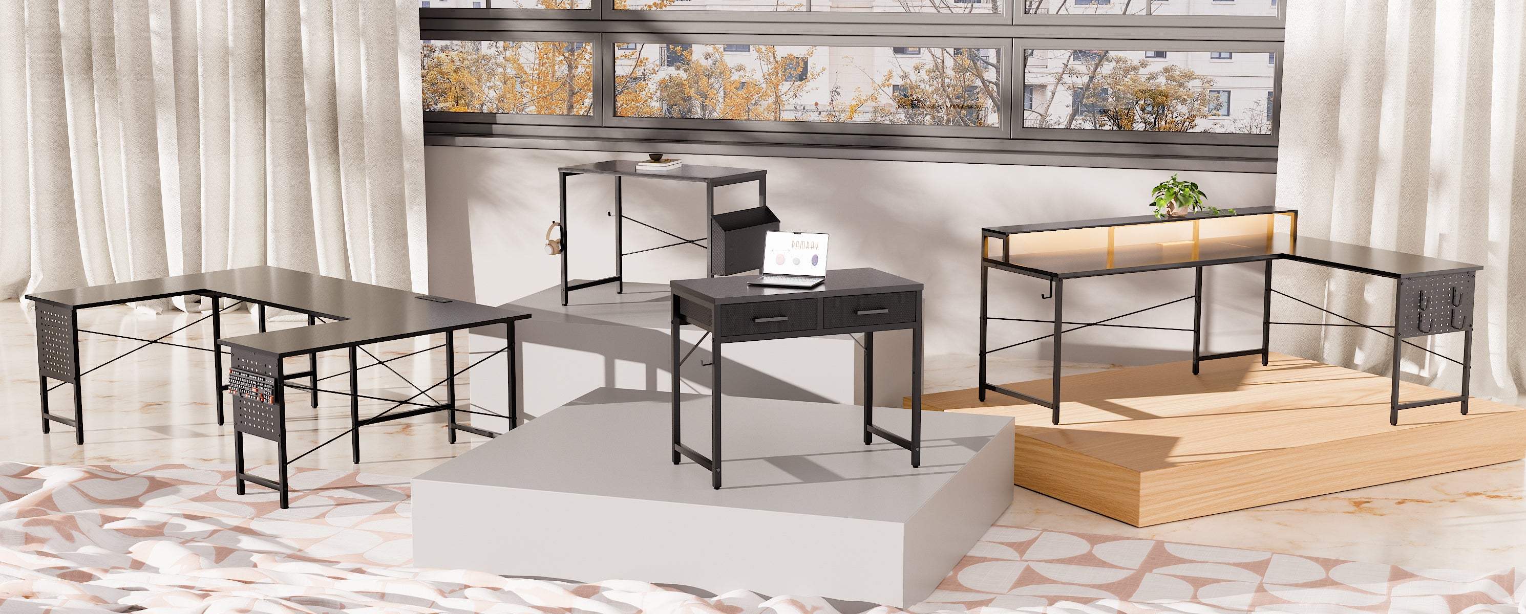 The L-shaped design enlarges the desktop space that provides spacious workstation for printers and other items, meeting your needs for home office, writing, studying, gaming, etc.