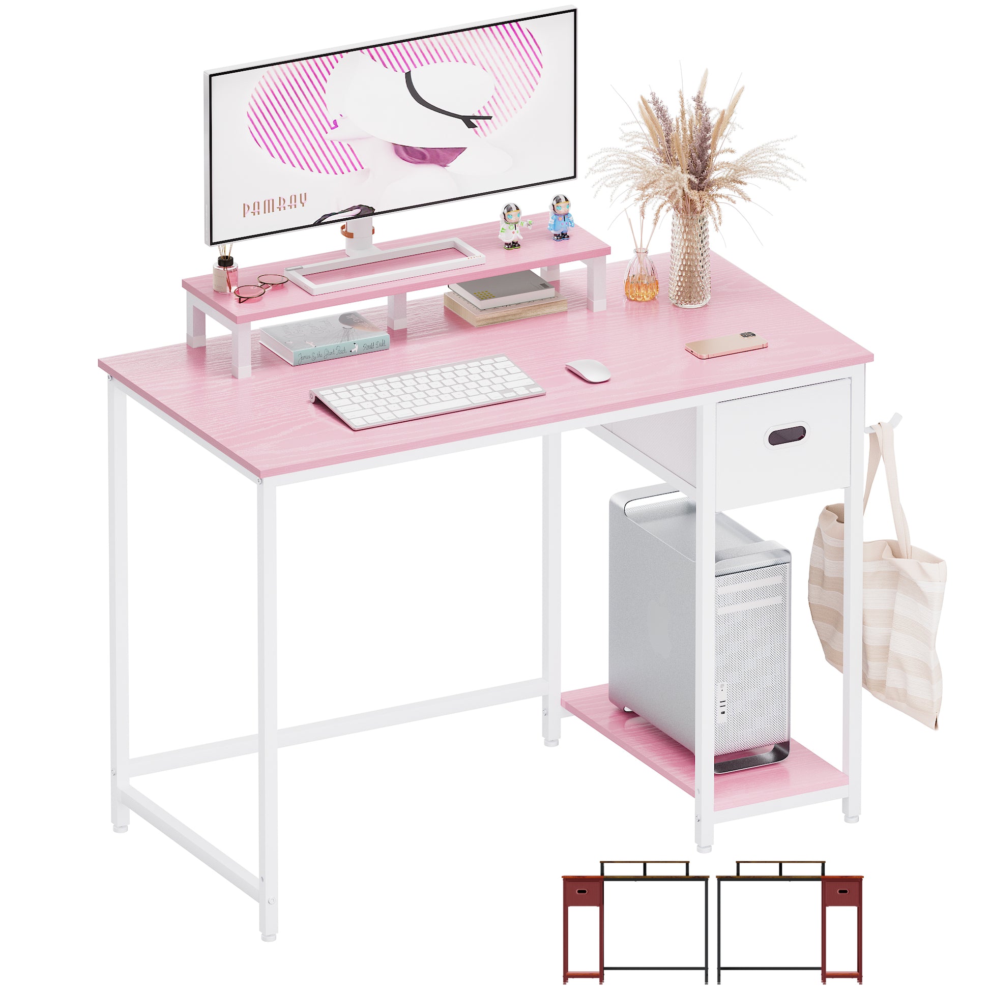 PAMRAY Escritorio para computadora de 39 pulgadas con soporte para monitor, escritorios pequeños para oficina en casa con cajón de almacenamiento para dormitorio