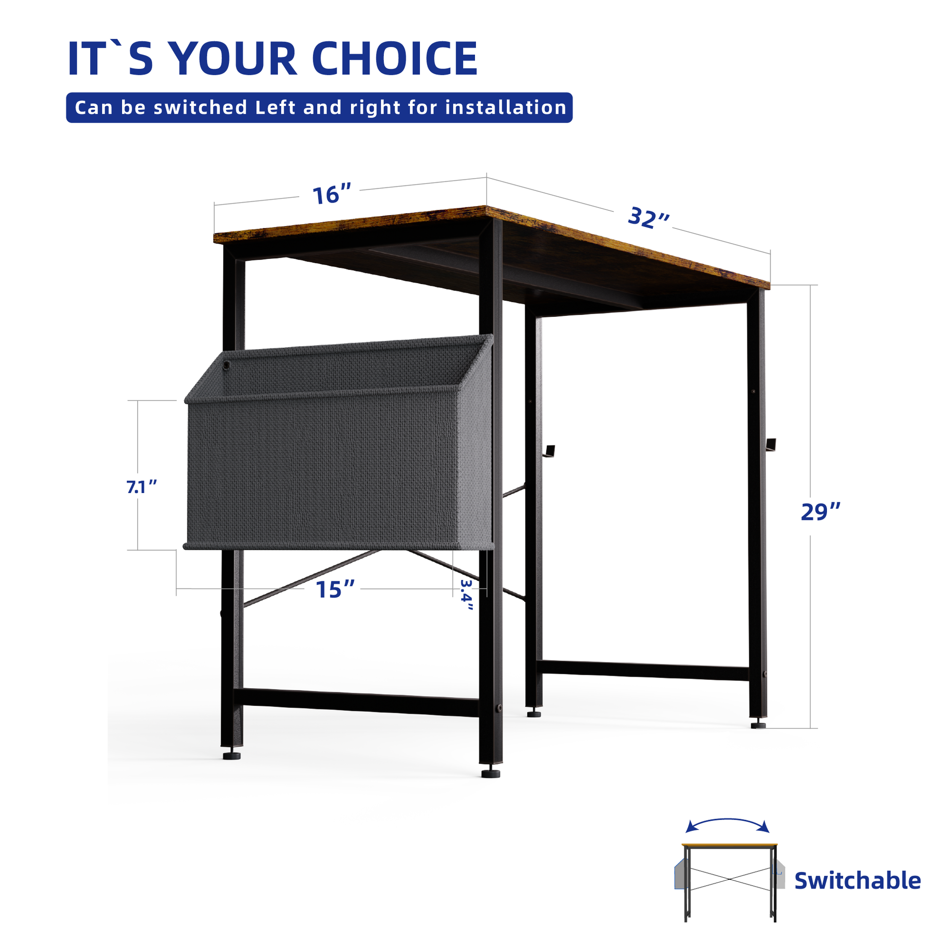 Pamray 32 Inch Computer Desk for Small Spaces with Storage Bag, Home Office Work Desk with Headphone Hook