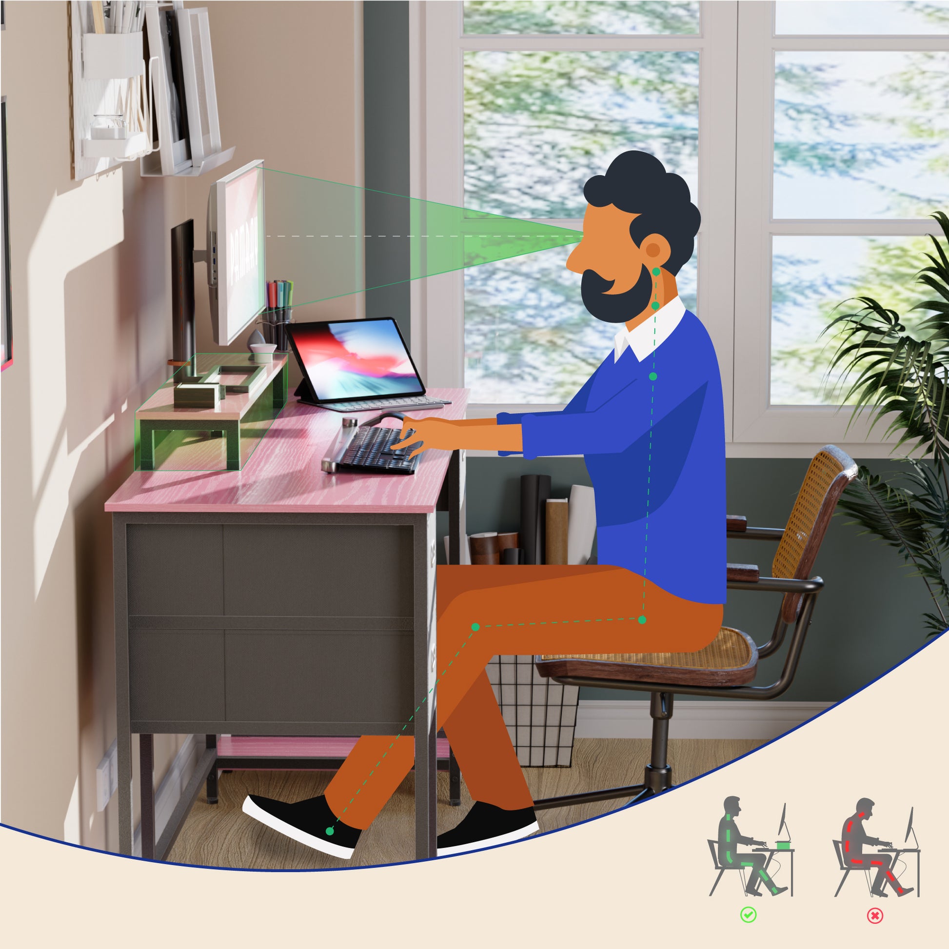 Computer Desk with Monitor Stand-- This computer desk with a monitor stand allows you to adjust the height of your monitor, enhancing visibility and work comfort.